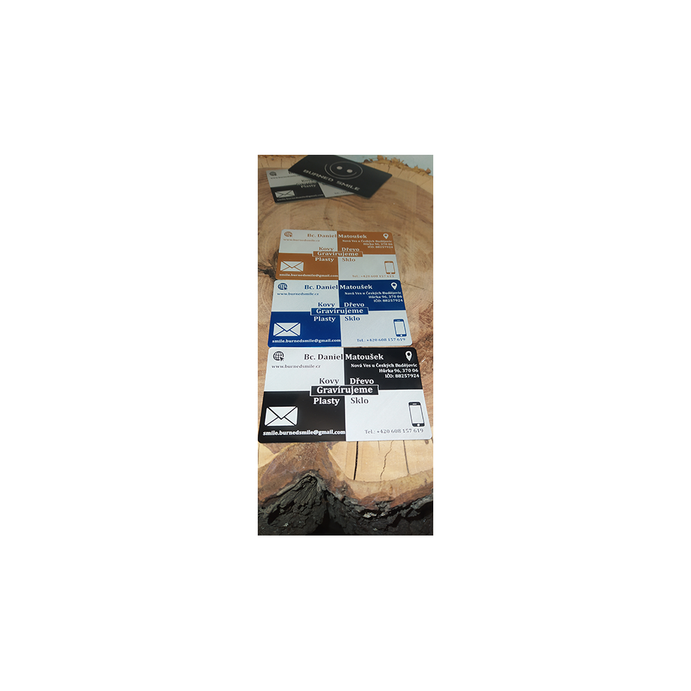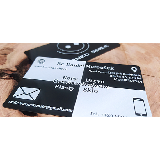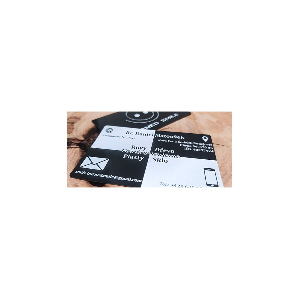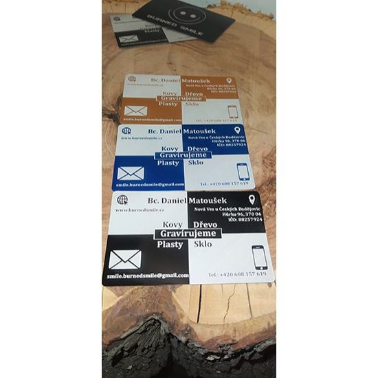 Jedinečné vizitky, které zaujmou na první pohled a pootevřou Vám vrátka ve Vašem podnikání. Vizitky jsou díky kvalitní hliníkové slitině tenké, pružné a odolné. Gravírování je do hloubky, proto se nemusíte bát, že by se Vaše informace znehodnotili.