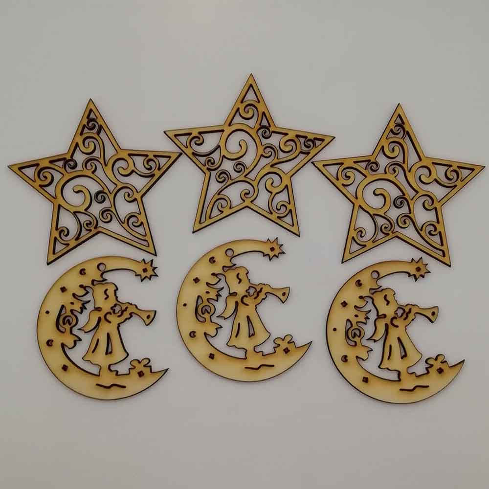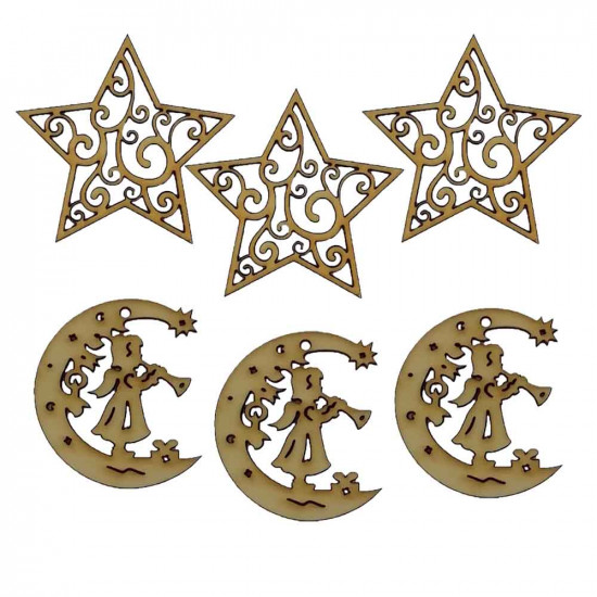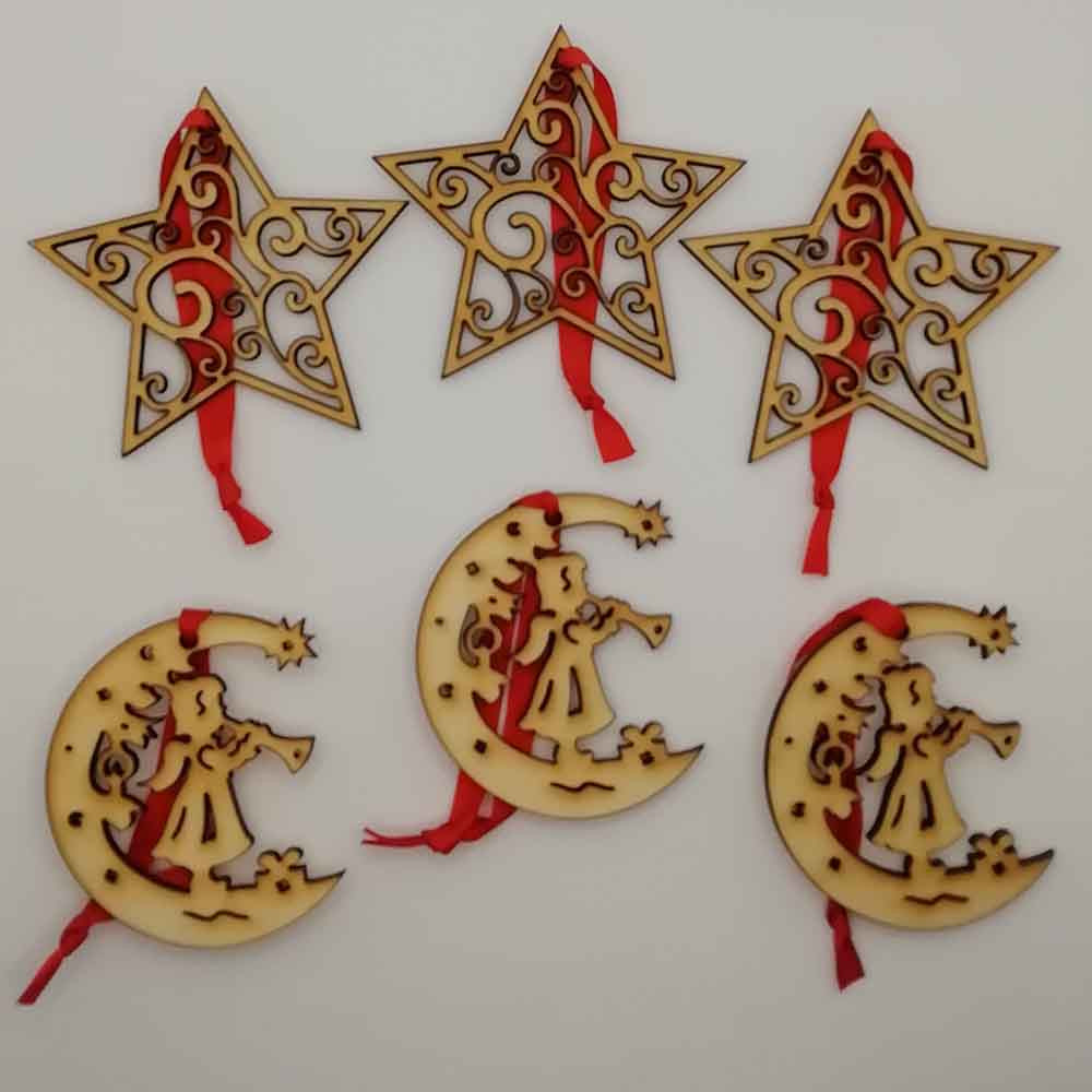 Dřevěné vánoční ozdoby - sada 6ks/mix. Vyřezávané a vygravírované z topolové překližky 3mm. Velikost cca 8cm.